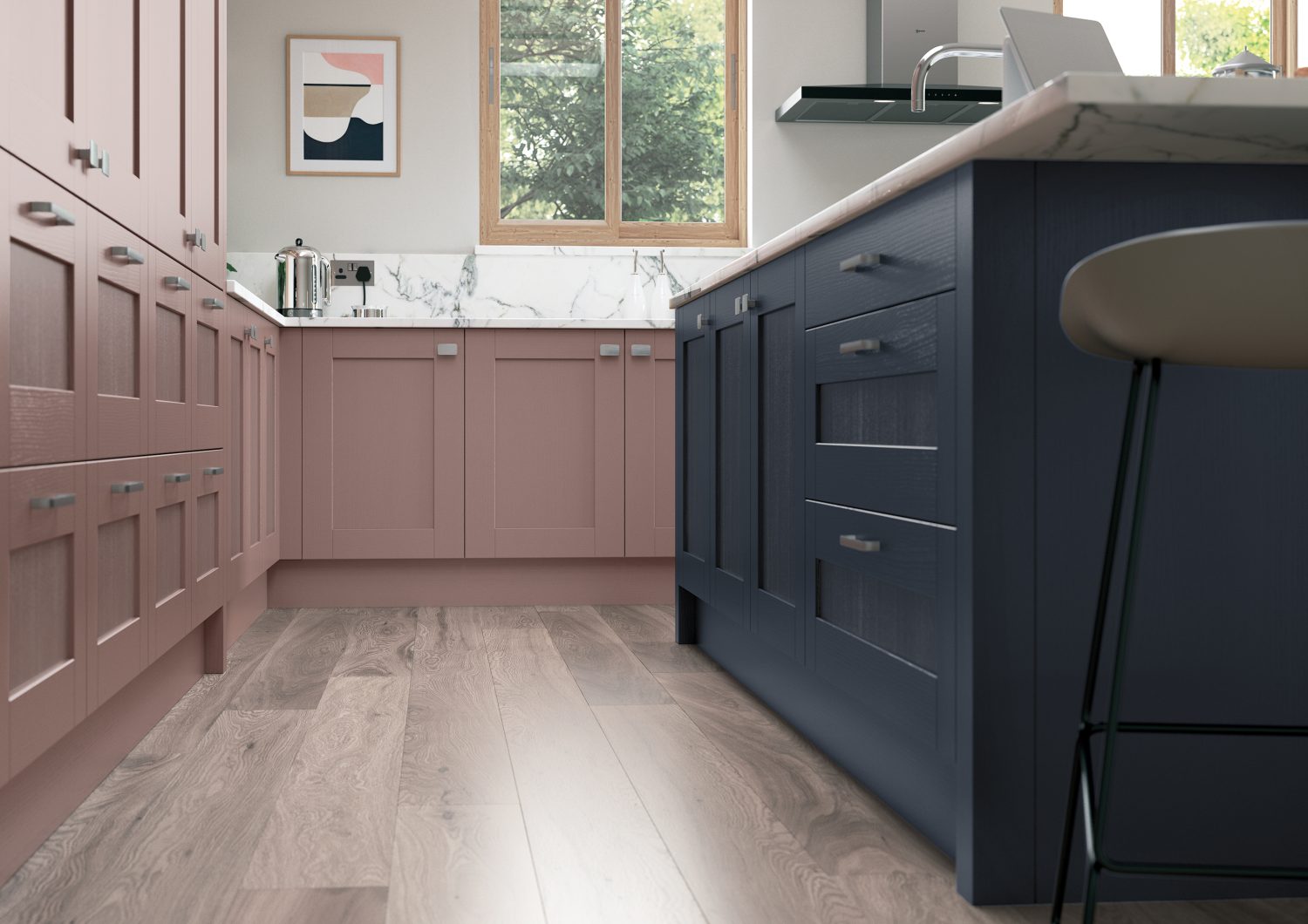 Pink & Blue Modern Shaker Kitchen Madison Range